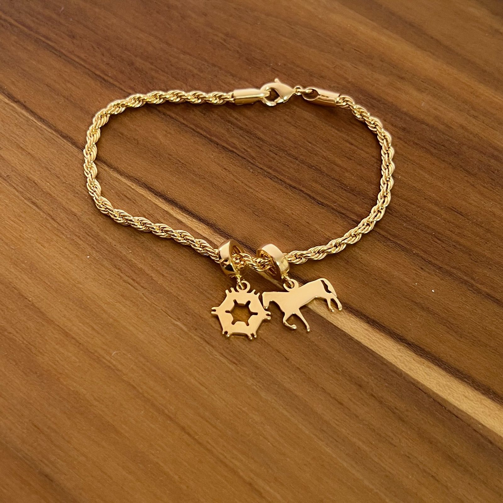 Pulseira Berloque Agronomia & Cavalo Banhados a Ouro 18k